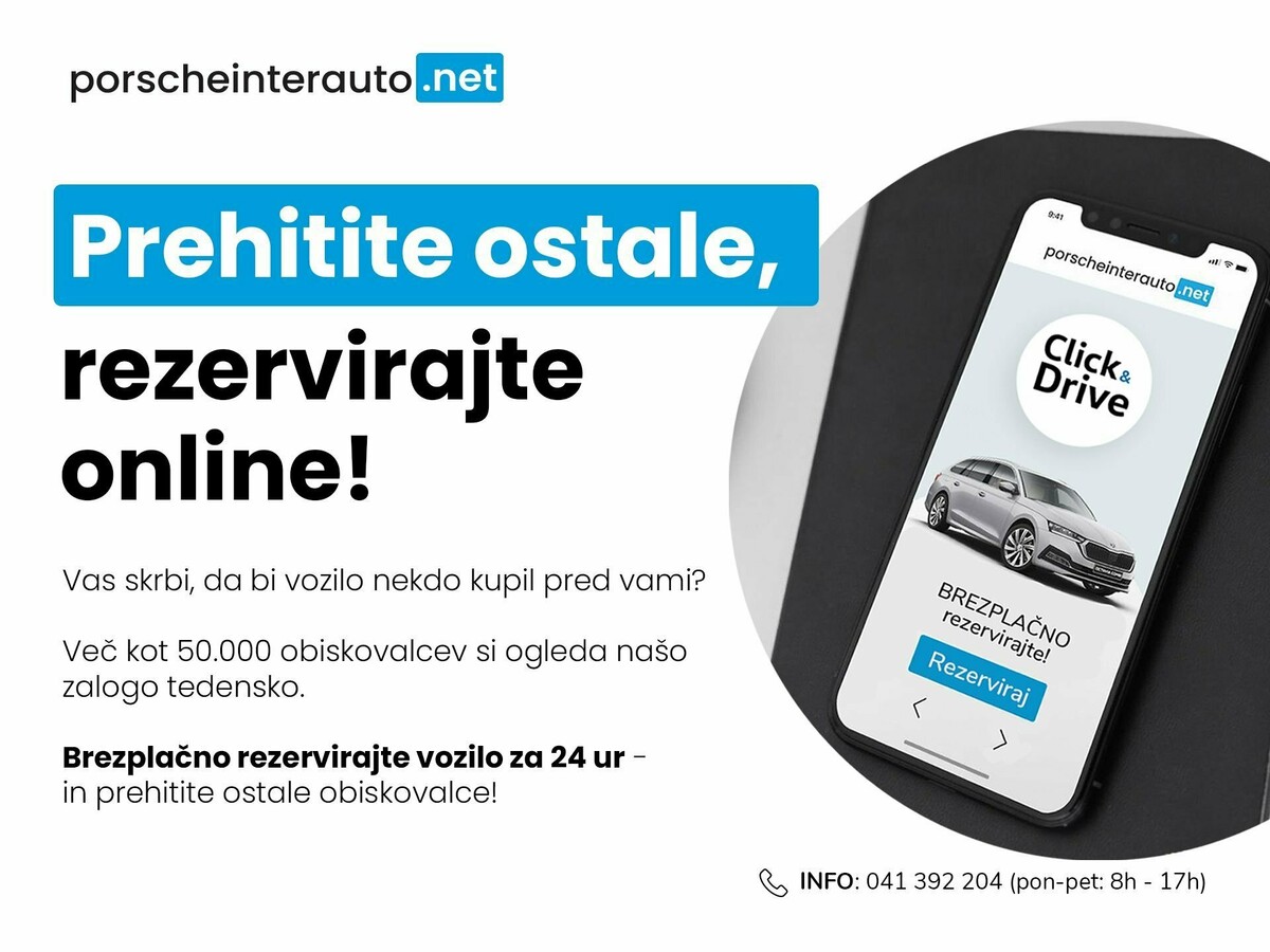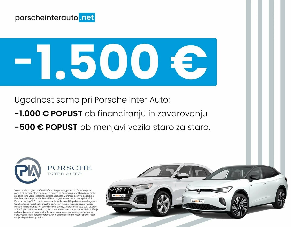 Bon za servis do 100 €: servis bon v vrednosti do 100 €: pri Porsche Inter Auto vam ob nakupu zagotovimo BON ZA SERVIS V VREDNOSTI DO 100 €. Tako si boste zagotovili vrhunsko opravljene servisne storitve. Pred nakupom obvezno povprašajte svetovalce ali ima ponudba/vozilo vključen bon.