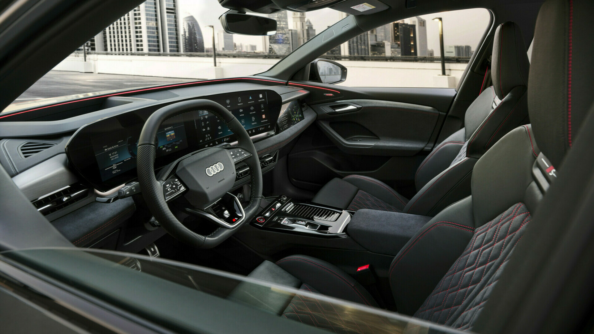 Notranjost Audija Q6 e-tron je premišljeno prilagojena potrebam uporabnikov kot nikoli prej. Tridimenzionalna zasnova notranjosti, bogata s kontrasti, namenoma postavlja elemente v ospredje ali v ozadje, kar ustvarja prostorsko arhitekturo, ki je oblikovno in ergonomsko prilagojena potnikom. Audijev panoramski MMI-zaslon in MMI-zaslon za sovoznika tvorita pregleden digitalni oder. Notranjost navdušuje z domačnim ambientom, kjer se t. i. "softwrap" razteza od vrat, čez celotno armaturno ploščo, do sredinske konzole, kar zagotavlja občutek varnega objema prostora. Barve in kakovostni materiali, deloma izdelani iz recikliranih materialov, so uporabljeni tudi pri izdelavi sedežev. Materiali so skrbno izbrani tako glede na funkcionalnost kot tudi zato, da prispevajo k jasni oblikovni razmejitvi različnih območij notranjosti vozila. Območja, ki so namenjena udobju, so opremljena z velikimi površinami in mehkimi materiali.
